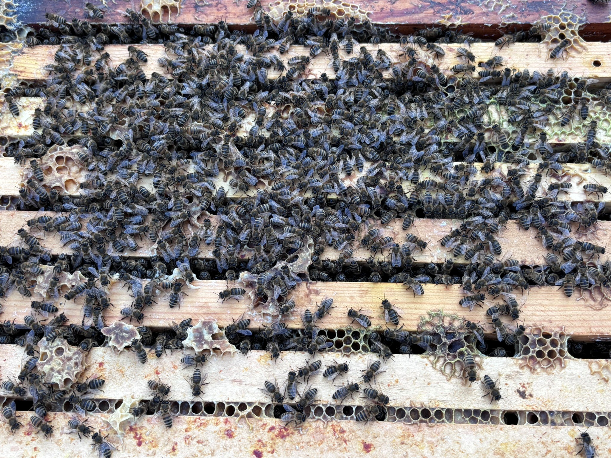 Ich freue mich: Alle fünf Völker sind gut über den Winter gekommen. Und die Königin ist auch schon in Brut gegangen, erkennbar daran, dass Pollen eingetragen werden. Alles, was ich jetzt machen kann und mache, ist, die Bienensaison vorzubereiten.