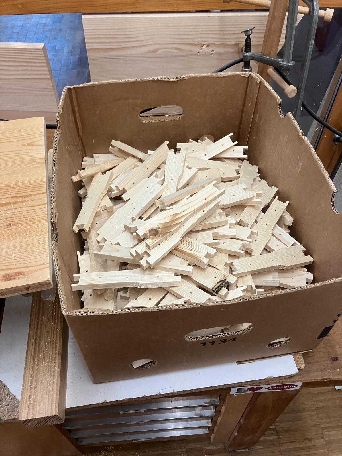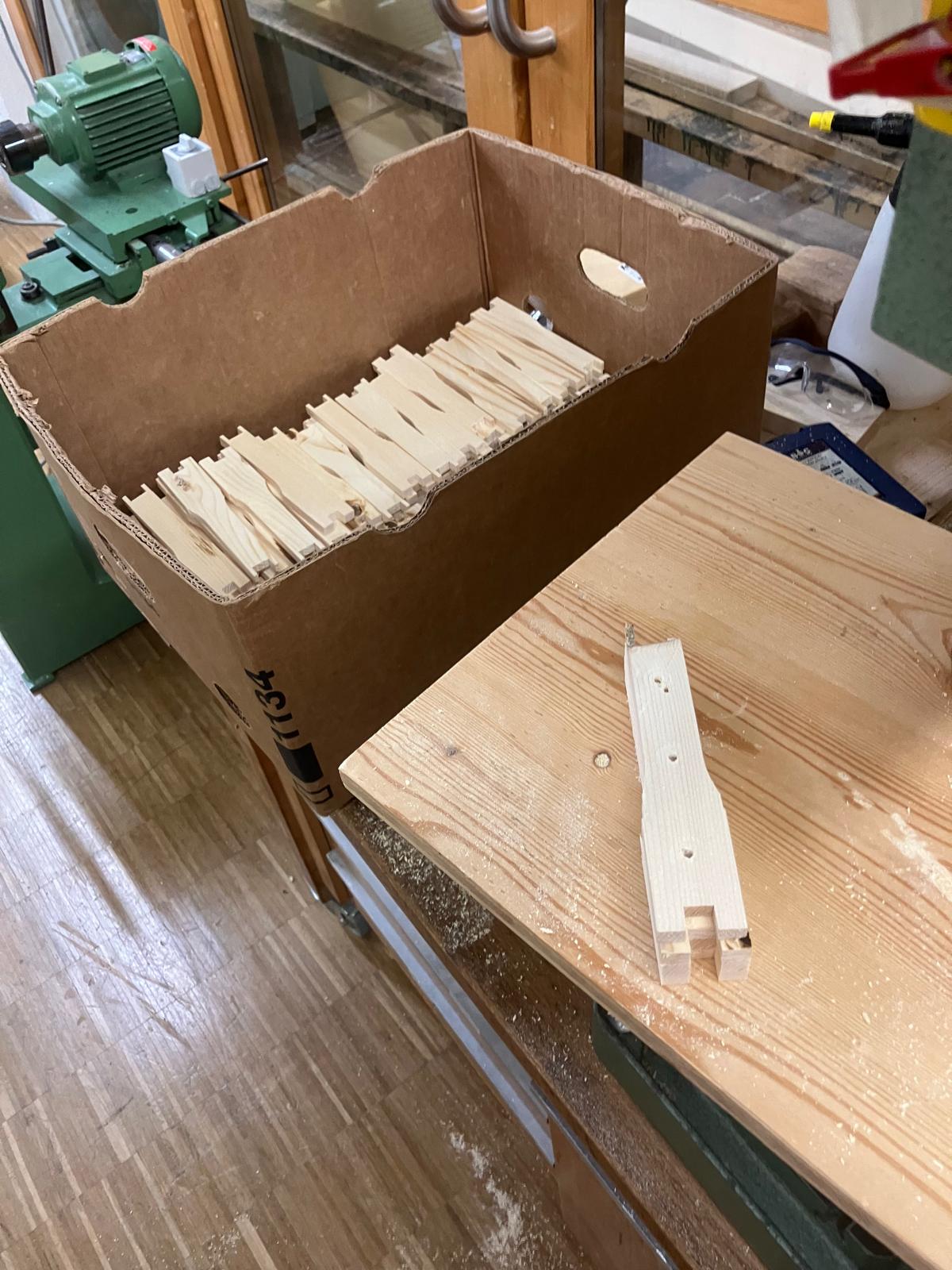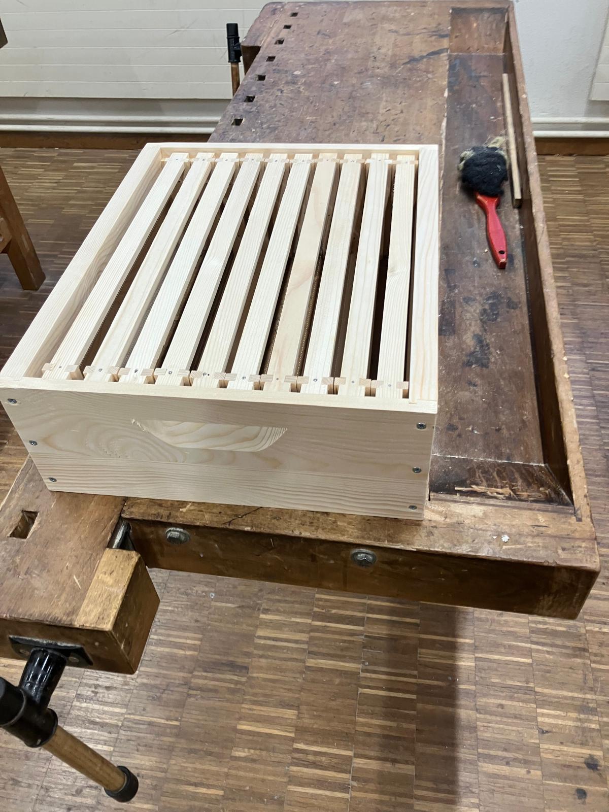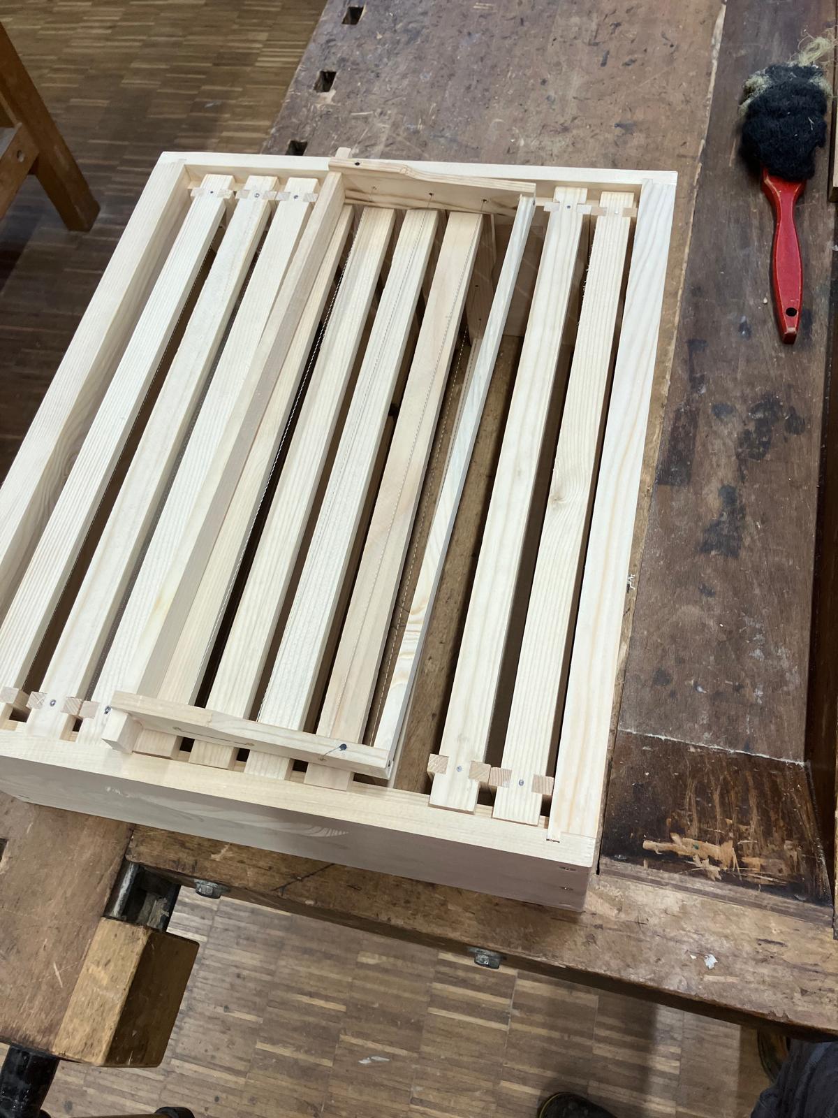 Heute habe ich die Rähmchen für die 4 Zargen meiner Beute gebaut. Es ging relativ gut, sobald ich den Dreh raus hatte. Doch manchmal hat mich der Draht gestupft, was nicht immer so fein war.