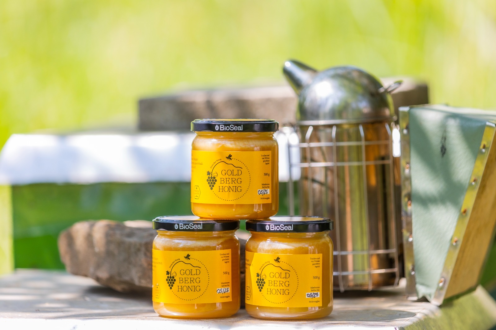 Wir machen auch keinen Sortenhonig wie Akazie, Linde oder Kastanie, sondern schleudern zweimal im Jahr eine Frühblüte und eine Sommerblüte. Der Frühjahrshonig ist in der Regel sehr cremig, wohingegen der Spätjahreshonig flüssig bleibt, aber sie gleichen sich nie im Geschmack und fallen jedes Jahr anders aus. Und auch in diesem Jahr bin ich wieder gespannt, wohin meine Bienen fliegen, welchen Nektar sie sammeln und wie am Ende der Honig aussehen und schmecken wird.