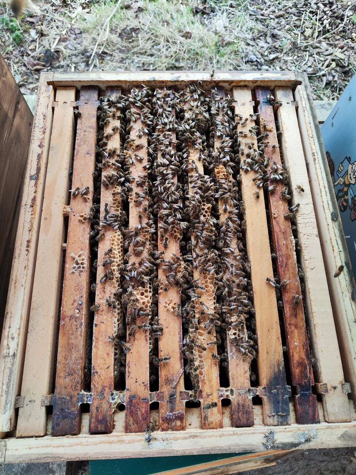 Der Februar hat uns noch einmal ordentlich Frost gebracht und damit auch an der einen oder anderen Stelle einen Nager in die Beute getrieben. Jetzt, bei den warmen Temperaturen um 15 Grad, fliegen die Mädels wieder aus und man kann die Beuten sichten, ohne dass sie sich die Flügelspitzen abfrieren. In allen Beuten ist noch ordentlich Futter, damit sollten sie bis zur Trachtzeit über die Runden kommen. Alle vier Völker füllen mehrere Rähmchen, das sollte für eine erfolgreiche erste Brutaufzucht ausreichend sein. Die Nager haben es sich anscheinend auch nur gemütlich gemacht, keine großen Fraßschäden sind vorhanden. Über den Winter hatten meine Mädels, auf Zander, zwei Räume zur Verfügung. Jetzt habe ich zwischen Brutraum und Futterraum wieder einen Trennschied gesetzt und die volleren Waben nach unten gesetzt, damit bevorzugt das Winterfutter gefuttert wird. In meinem vierten Imkerjahr starte ich endlich mit erfolgreich überwinterten Völkern in die Saison! Im letzten Jahr hatte es nur eins von fünf Völkern geschafft.