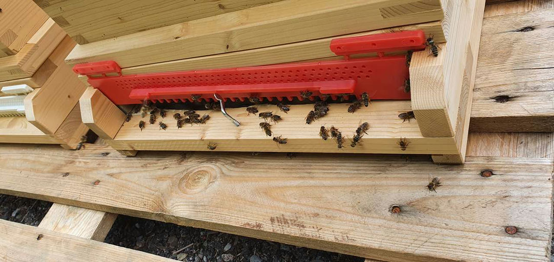 Alle fünf Völker haben sich insgesamt gut eingeflogen, den Königinnen geht es gut und sie legen fleißig Eier. Sie tragen nun auch Futter ein, nachdem sie am Anfang jeweils einen Liter Zuckerwasser bekommen haben.