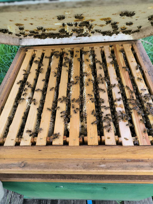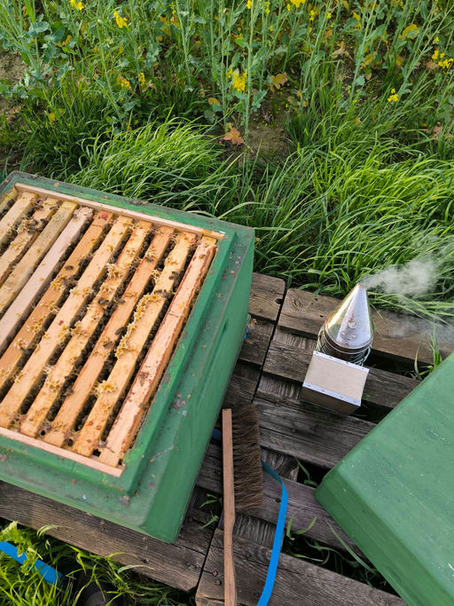 Alles blüht und grünt immer mehr, und das Erweitern hat gut funktioniert. Unser Vogelsang-Volk ist prächtig gewachsen. Jetzt werden auch bald die Honigräume und das Absperrgitter aufgesetzt, und der erste Frühtrachthonig wird eingetragen. Denn es wird jetzt schon fleißig Pollen und Nektar gesammelt.