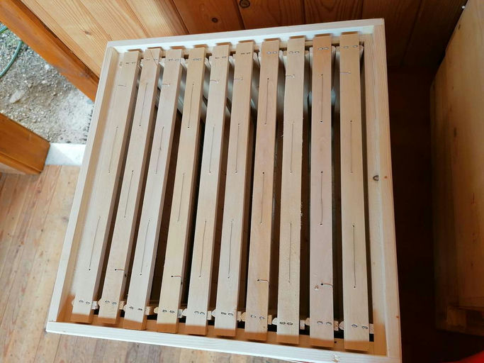 Die Beute habe ich derweil in der Bienenhütte verstaut. Ansonsten soll dort strenge Ruhe eingehalten werden, da wir -15 °C haben. Im Winter halten sich die Bienen in einer Traube auf, um sich gegenseitig zu wärmen. Fällt eine Biene herunter, so ist dies ihr Todesurteil, da sie sich in der Kälte nicht bewegen kann. Daher werden zurzeit sämtliche Tätigkeiten in der Bienenhütte und Umgebung eingestellt.