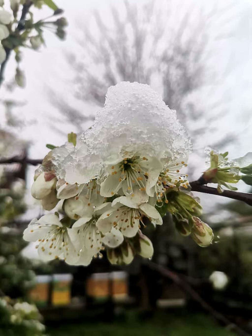 Auch in diesem Jahr hatten wir einen kurzen „Wintereinbruch“ im April. Nach den warmen Tagen im Frühling sollte jedoch genug Futtervorrat vorhanden sein, um es den Völkern zu ermöglichen, die Brut weiterhin gut zu versorgen. Die Bienen regulieren die Temperatur im Bienenstock selbst. Wenn es kalt ist, erzeugen sie durch Muskelzittern Wärme. Bei Hitze holen die Sammelbienen Wasser, um es zu verdunsten und so den Stock abzukühlen.