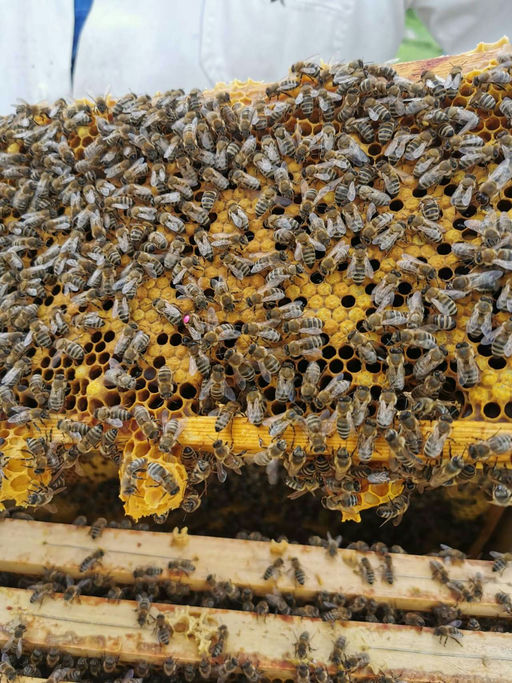 Im wahrsten Sinne des Wortes: Die ersten zwei Wochen waren Hochsommer. Klimawandel oder doch nur eine Ausnahme? Bis zu 28 Grad Plus in unserem Berggebiet. Die Bäume (Kirsche, Äpfel, Birne, Zwetschge usw.) standen in einer Blütenpracht, die berauschend war für unsere fleißigen Bienen. Zum Schluss auch noch die Löwenzahnpracht auf den Wiesen, alles gelb, und dann … der massive Wettersturz. In der zweiten Hälfte des Aprils gab es Regen, Schnee, Kälte, ja sogar Minusgrade. Unsere armen Bienen! Das Einzige, was wir für sie tun konnten, war, ihnen kleinweise Futterteig zu geben, damit sich die Brut entwickeln kann und die Völker nicht verhungern müssen. Aber jetzt, Ende des Monats, geht es schön langsam wieder bergauf. Die weitere Entwicklung wird sich im Mai zeigen. Hoffentlich gibt es nicht zu viele Schwärme. Meine letzte Kontrolle am 28.4.24 zeigte schöne Brutwaben, aber leider auch einen Spielnapf. Kontrolle ist jetzt laufend erforderlich.