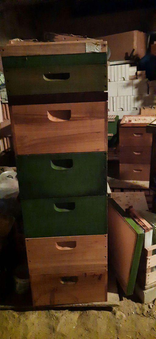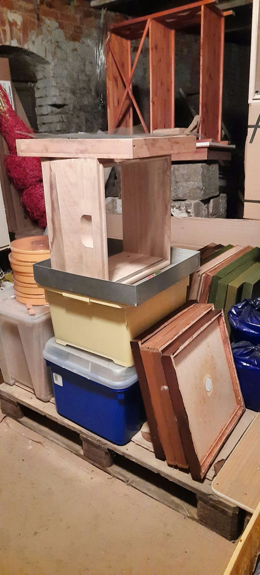 Oh je. Zum Ende der Saison habe ich nur noch hingestellt, aufgetürmt und geschichtet. Jetzt ist es Zeit, Ordnung zu machen. Die ausgeschmolzenen Rähmchen werden von den Resten befreit und zum Trocknen aufgehängt. Die Zargen werden sauber gemacht und platzsparend gestapelt. Beim Einschmelzen der Rähmchen entstehen solche Scheiben. Irgendwie sind auch noch welche vom vergangenen Jahr liegen geblieben. Die schmelze ich alle zusammen und bekomme dann einen schönen Wachsblock. Diesen bringe ich zum Umarbeiten und erhalte neue Mittelwände aus dem Wachs meiner Bienenvölker.