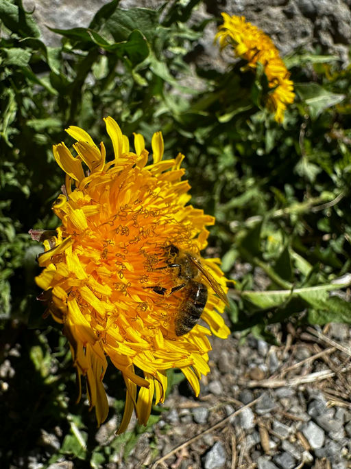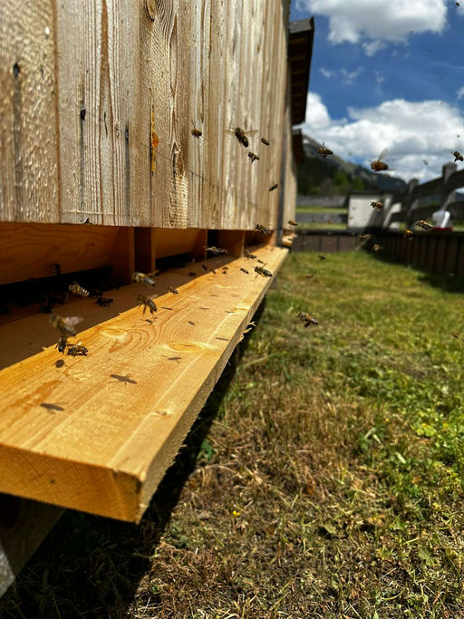 Im April werden bei uns die ersten Honigräume aufgesetzt. Die Tracht beginnt nun langsam, und die Bienen können schon Nektar sammeln und diesen in die Beute eintragen. Durch den milden Winter ist die Natur drei Wochen früher dran als in den letzten Jahren, was den Bienen durchaus zu schaffen macht. Sie haben schon sehr früh sehr viel Brut. Durch einen kurzen Wintereinbruch mit etwa 15 cm Schnee um den 20. April musste ich die Bienen mit Decken vor der Kälte schützen, damit sie es etwas leichter haben, die Brut warm zu halten und nicht so viel Energie brauchen. Der Bereich, in dem die Brut ist, wird von den Bienen auf etwa 35 Grad Celsius gehalten.