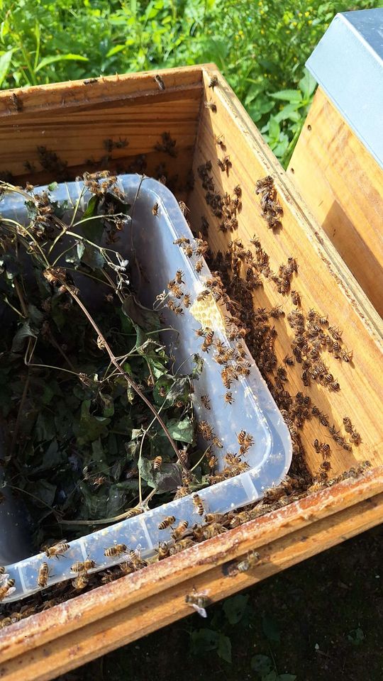 Der Imker hat das Gewicht der Beuten – so nennt man die Bienenbehausungen – kontrolliert. Jedes Volk soll etwa 30 kg Futter eingelagert haben, damit es gut durch den Winter kommt. Außerdem wurden die Bienen gegen die Varroamilbe behandelt – ein gefährlicher Parasit, der Bienenvölker schwächen kann. Mehr dazu erfahren Sie im Septemberbericht.