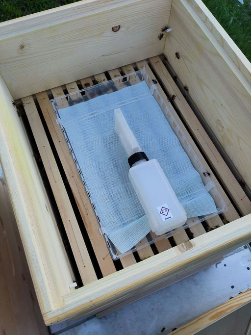 Im August ist bei den Bienen immer viel zu tun! Zunächst steht eine kleine Futtergabe an, damit die Bienen für die darauffolgende Behandlung genug Futter und Kraft haben. Die Varroa ist ein schädigender Parasit, der leider aus Asien eingeführt wurde und seither in jedem Volk vorhanden ist. Anschließend wurde eine Varroa-Zählung gemacht – durchschnittlich weniger als 0,25 Milben pro Tag! Dies ist ein sehr gutes Ergebnis, allerdings wird trotzdem eine Varroabehandlung mittels Ameisensäure durchgeführt – wir brauchen nämlich unbedingt gesunde Winterbienen! Ich werde im August noch versuchen, möglichst viel zu füttern, denn die Bienen brauchen mehr Futter, als manche erwarten – pro Volk immerhin mindestens 16 kg Zucker!