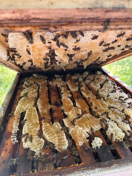 Juni ist der Monat, in dem alles blüht. Der Mai hat mit dem Regen Feuchtigkeit in den Boden gebracht, und der Juni bringt mit seinen warmen Sommertagen die Blumen, Sträucher und Bäume zum Blühen. Da können die lieben Bienen aus dem Vollen schöpfen. Die Futterwaben werden angefüllt, um Futter für den Herbst und Winter einzulagern. Manchmal ist es schon so viel, dass sie Wildbau betreiben – auch das ist erlaubt.