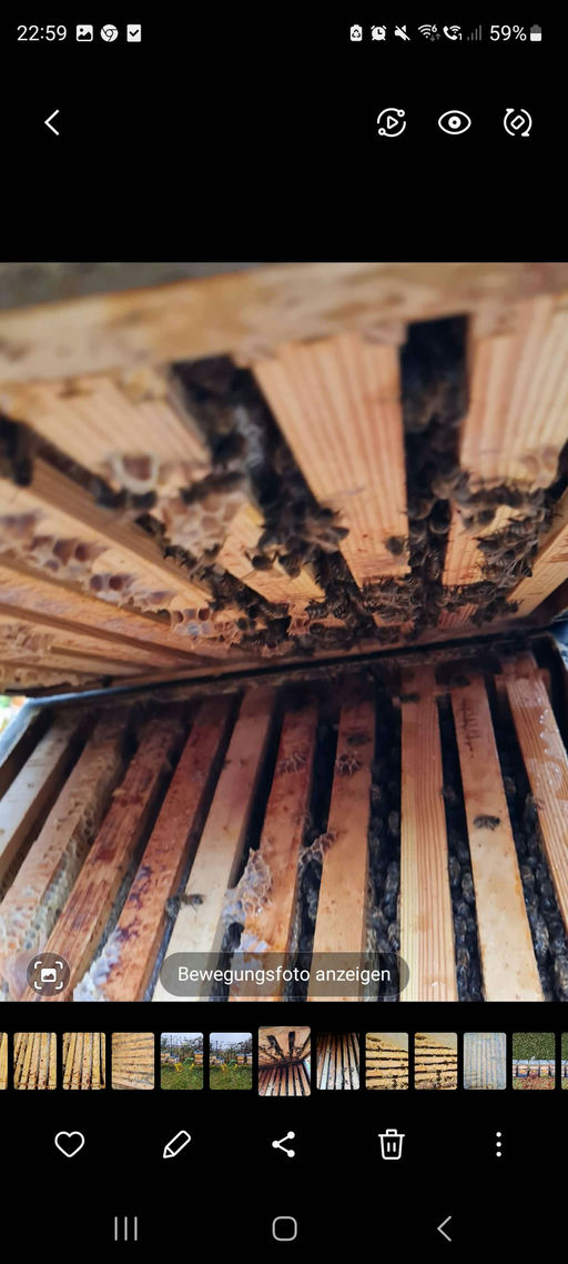 Die Kontrolle, ob für die Winterruhe alles in Ordnung ist, verlief positiv. Es ist genügend Futter vorhanden, die Königin ist da, und die Bienen sehen fit aus. Im Dezember steht die Oxalsäurebehandlung an, damit auch die letzten Milben absterben. Der Winter kann kommen. Es wäre gut, wenn es mal einen Winter ohne Temperaturen über 20°C gäbe, damit die Bienen nicht ständig mit Temperaturschwankungen zu kämpfen haben.