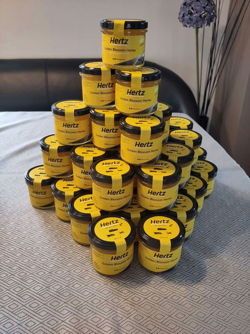 Anfang Oktober gab es die letzte kleine Portion Futter und Gewichtskontrollen. Der Oktober ist für den Imker vielleicht ruhiger – für die Bienen ist die wichtigste Aufgabe jedoch die Aufzucht der Winterbienen. Im Vergleich zu den Sommerbienen, die nur etwa vier Wochen leben, beträgt die Lebenserwartung der Winterbienen drei bis sechs Monate! Außerdem wurde ein aktuelles Schild mit meinen Kontaktinformationen am Zaun befestigt, und Hertz hat den Honig, der dieses Jahr geerntet wurde, erhalten.