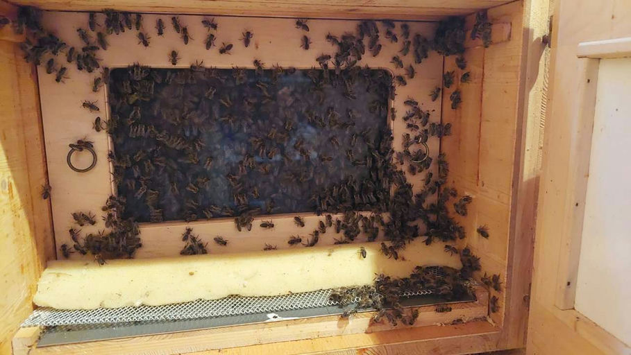 Heute war es soweit – die Bienen wurden eingewintert. Das heißt, bei meinen anderen Stöcken wurden die Honigräume entfernt und auf einen Stock reduziert. Leider war ein Stock so schwach, dass er zwei Brutwaben gesponsert bekommen hat, um im Frühjahr noch einen halbwegs guten Start hinlegen zu können. Aber dennoch hat er sich kaum entwickelt. Daher musste ich leider die Königin, die erst zwei Jahre alt war und aus der heimischen Zuchtstation gekauft wurde, entfernen. Der gesponserte Stock inklusive Königin wurde mit dem schwachen Volk vereint. Dieser neue Stock kann daher im Bienenhaus überwintern statt draußen. Ich erhoffe mir dadurch ein starkes Volk im Frühjahr und dass es diesen Winter überleben kann.