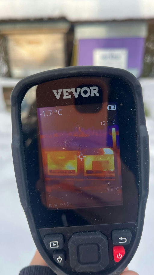 Im Winter versammeln sich Bienen in einer dichten Traube, um Wärme zu erhalten. Diese natürliche Überlebensstrategie lässt Imker oft im Unklaren über den Zustand ihres Bienenvolks. Hier kommen moderne Technologien wie Infrarotmessgeräte und Wärmebildkameras ins Spiel. Mit diesen Hilfsmitteln können Imker die Temperatur innerhalb des Bienenstocks erkennen und so sicherstellen, dass die Bienen den Winter erfolgreich überstehen. Während des Winters wandert die Traube innerhalb der Beute und hält sich dort auf, wo sich Futter befindet. Ich freue mich jedes Mal, wenn ich die gelbe Kugel auf der Wärmebildkamera sehe, denn dann weiß ich, dass die Bienen leben. ❄️☃️🐝🐝🐝