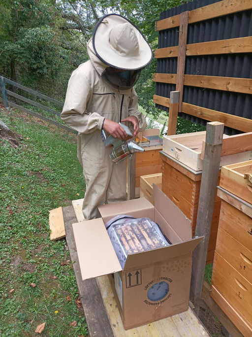 Letzte Woche sind meine Bienen von der Imkerei Hartner angekommen. Ich freute mich schon sehr auf das Paket. Es waren sechs Rähmchen. Die Königin konnte ich auch schon sichten. Jetzt werden die Bienen gefüttert und gegen die Varroamilbe behandelt. Vielen Dank an die Imkerei Hartner, an Fressnapf und Hektar Nektar.