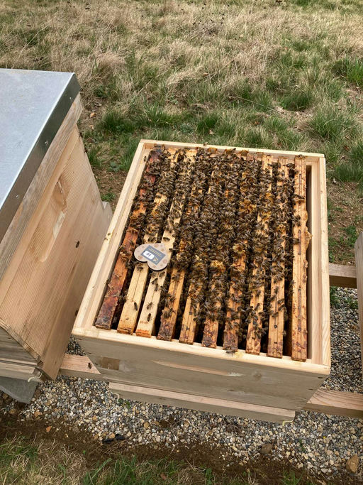 Unsere Bienenvölker werden immer stärker, und es scheint, als sei der Winter vorbei. Im März ist schon viel Betrieb, und ich habe in der Bienenzeitschrift über eine Neuerung gelesen: Mit einem Stockherz, das mehrere Sensoren enthält, kann man den Bienenstock und seine Bienen überwachen, um zu sehen, wie es ihnen geht. Daher habe ich mich entschlossen, dies auszuprobieren und das Bienenherz im Brutraum einzusetzen. Es funktioniert hervorragend – neben der Temperatur werden mehrere Parameter gemessen und über eine Bluetooth-Verbindung direkt aufs Handy übertragen! Was die Technik heutzutage alles schon kann, ist unglaublich. Wir hoffen, damit den Bienen das Leben etwas zu erleichtern bzw. frühzeitig Tendenzen zu erkennen.