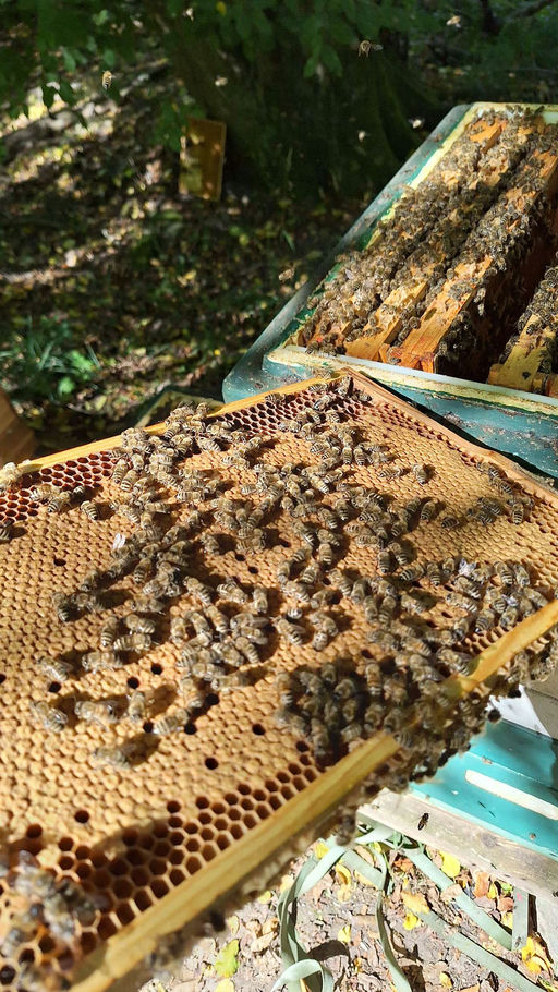 Es ist vollbracht, die Bienen stehen! Bevor sie nun endlich ihren Stellplatz eingenommen haben, ist einiges passiert. Zuerst wurde das gesamte Wabenwerk entnommen und gegen unbebrütetes Wabenwerk ersetzt. Damit soll unter anderem ein guter Winteraufbau gelingen, da sehr viele Varroamilben aus den Beuten kommen. Zum anderen wurden die Bienen das erste Mal aufgefüttert, damit die Königin in Eiablage bleibt. Dies wurde natürlich drei Tage später kontrolliert, und ja, die Eiablage ist da! Wie schön sie dastehen! Morgens bekommen sie an ihrem Standort die ersten Sonnenstrahlen ab und können die letzten Leckereien der Natur in Eutin genießen.