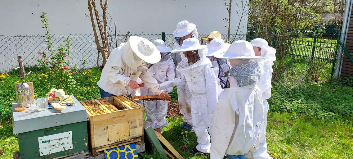 Im April gibt es bereits einiges am Bienenstand zu tun. Überzählige Futterwaben werden entfernt, alte, sehr dunkle oder etwas schimmelige Waben werden eingeschmolzen. Bei der Betriebsweise Dadant engen wir unsere Völker nun mit einem Schied ein, damit der Wärmehaushalt für das Volk einfach zu halten ist und keine leeren, unbesetzten Waben gewärmt und gepflegt werden müssen. Da der April leider immer noch sehr kühl und regnerisch war, muss weiterhin auf genügend Futtervorrat in den Völkern geachtet werden, da es immer noch passieren kann, dass Völker verhungern. Außerdem beginnt die Schwarmkontrolle, das heißt, es wird überprüft, ob Weiselzellen zu sehen sind – als Anzeichen von Schwarmlust im Volk.