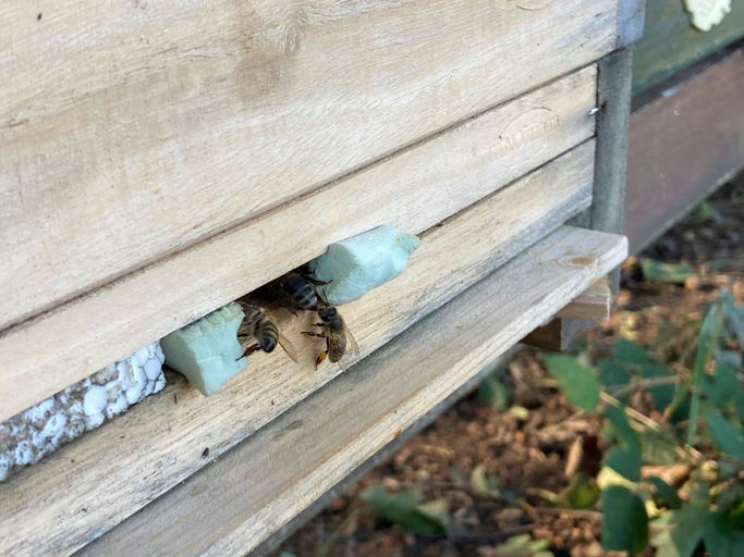 … hat sich leider nicht so gut entwickelt, wie ich es mir erhofft hatte. Leider sitzt das kleine Bienenvolk immer noch auf nur drei Waben, und meine Sorge wächst, dass sie einfach zu schwach sind, um den kommenden Winter zu überleben. Aber sie sind Kämpferinnen und verteidigen mutig ihre Honigvorräte gegen die vielen Hornissen, die derzeit die Bienenstöcke umkreisen.