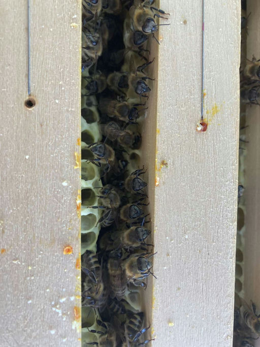 Wir sind gespannt... Obwohl das kleine Bienenvolk sehr schwach war, sind wir zuversichtlich, dass es jetzt noch an Stärke zunimmt und wir es somit gut über den Winter bringen können. Das kleine Volk hat in den letzten Wochen regelmäßig Futter bekommen und wurde zusätzlich mit Schieden eingeengt. So konnte es sich gut entwickeln und sich auch besser gegen Eindringlinge wie Wespen und Hornissen verteidigen. Auch die ersten Jungbienen sind bereits geschlüpft.