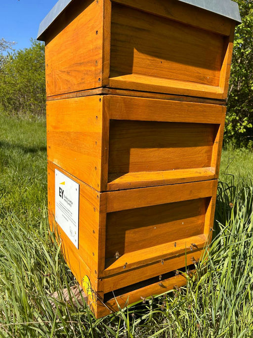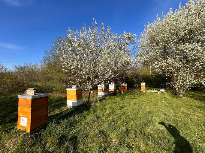Es ist jedes Jahr aufs Neue faszinierend, wie sich ein Bienenvolk entwickelt. Ist das Wetter grau und kalt, haben wir einen kleinen Haufen Bienen im Volk. Sobald der Frühling warm und spürbar wird, gibt die Königin Gas. Es werden Eier über Eier gelegt und das Volk braucht bald mehr Platz. Ich bin wirklich in der glücklichen Position, am Stadtrand von Wien im 22. Bezirk einen idyllischen Standplatz für meine Bienen gefunden zu haben. Es blüht und summt alles. So haben die Bienen schon recht bald einen "Honigraum" bekommen, abgesperrt durch ein Gitter. Da die Königin etwas größer als die Arbeitsbienen ist, kann sie im Honigraum nicht brüten – so wird hier nur der leckere Honig abgelegt. Die unteren Zargen (Kisten) sind also für die Brut, die obere Zarge für den Honig.