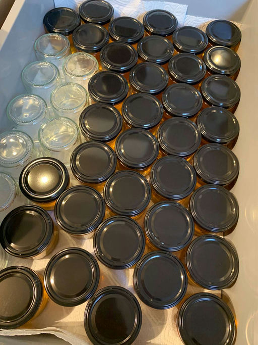 Nun ist er wieder im Glas: der neue Honig, den die Bienen in diesem Jahr fleißig gesammelt haben! Nach dem Schleudern lassen wir den Honig durch ein feines Sieb laufen, damit kleine Wachsreste aus dem Honig entfernt werden. Danach wird er aus einem Abfüllkübel in Gläser gefüllt, der Deckel fest verschraubt und mit Etiketten versehen. Fertig zum Genießen! Zuckersüß, die kleinen Gläser!