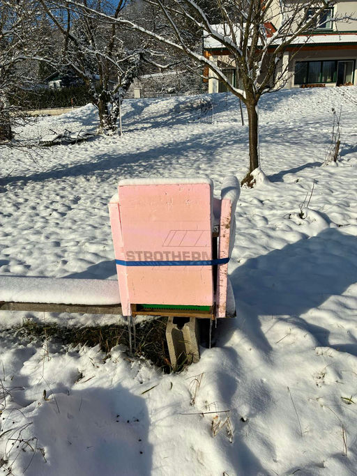 Dieses Jahr hatten wir das Glück, weiße Weihnachten zu erleben ❄️. Bei diesen Temperaturen bleiben die VAV-Bienen im Bienenstock. Es gibt momentan nicht viel am Bienenstock zu tun, außer die Fluglöcher zu kontrollieren, ob sie bei Schneefall frei sind. Falls nicht, wird der Schnee abgekehrt, damit die Fluglöcher nicht vereisen.