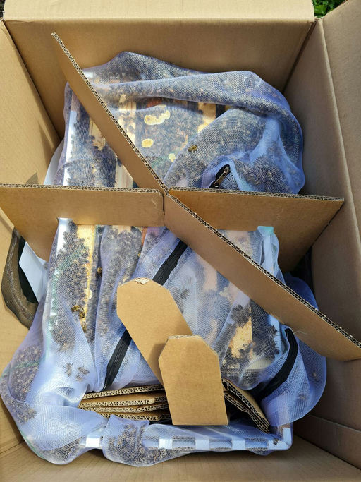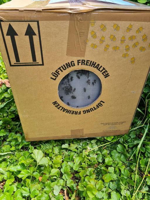 Heute war es soweit. Ein Paket voller Bienen kam an. Für uns definitiv Neuland, Bienen, die im Paket kommen. Aber sie sind alle wohlauf. In ihrer neuen Behausung scheinen sie sich auch wohlzufühlen, und wir freuen uns über den Zuwachs! Vielen Dank für diese schönen Projekt-Bienen!