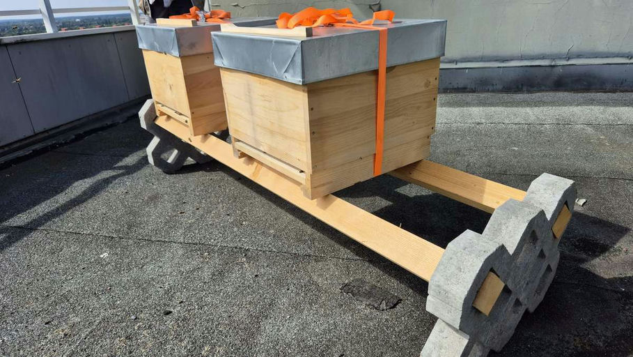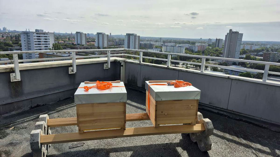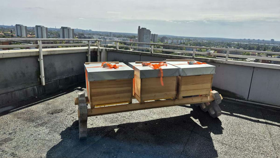 Nun konnte ich endlich die Bienen aufstellen und sie gleich ein bisschen fliegen lassen. Sie fühlen sich schon richtig wohl.
