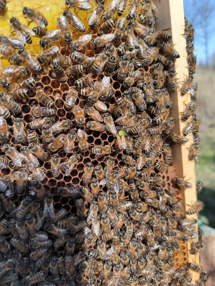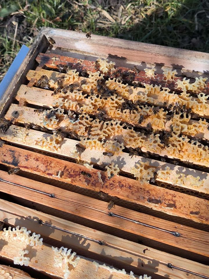 Langsam kommt der Frühling, und die Bienen können um die Mittagszeit schon ein paar Stunden nutzen. Die Weiden, der Schwarzdorn und die Mirabellen beginnen jetzt langsam zu blühen, und die Bienenvölker starten durch. In den nächsten Wochen wachsen die Brutnester stark an, und die dann schlüpfenden Bienen verstärken das Bienenvolk für die anstehende Frühtracht. Die erste Durchsicht wurde gemacht, es ist alles in Ordnung, und der zweite Brutraum konnte gegeben werden.