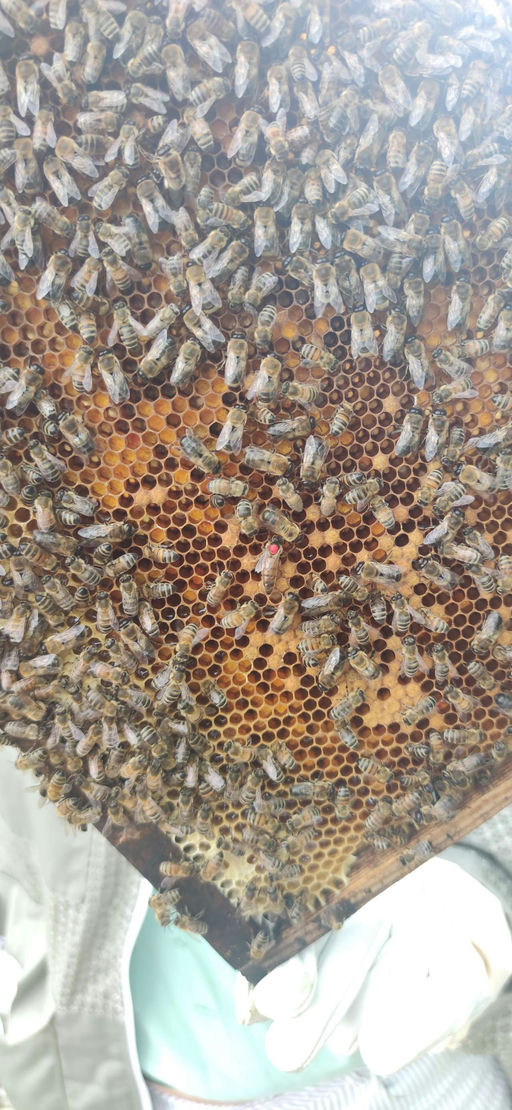 Wie ihr sehen könnt, bin ich insgesamt ganz zufrieden. Die Königin – ich habe sie Lady Strawberry getauft – legt nach ein paar Anlaufschwierigkeiten brav ihre Eier, und die nächsten Rähmchen sind schon ausgebaut, um mehr Platz für die Brut und das Futter zu schaffen. Schließlich geht es für die Bienen nun seit der Sommersonnenwende schon Richtung Wintervorbereitung. Honig wird für die lange Zeit ohne Nektar in der Natur eingelagert, und die Bienenmasse nimmt langsam ab. Komisch, Ende Juni schon an den Winter zu denken, oder?