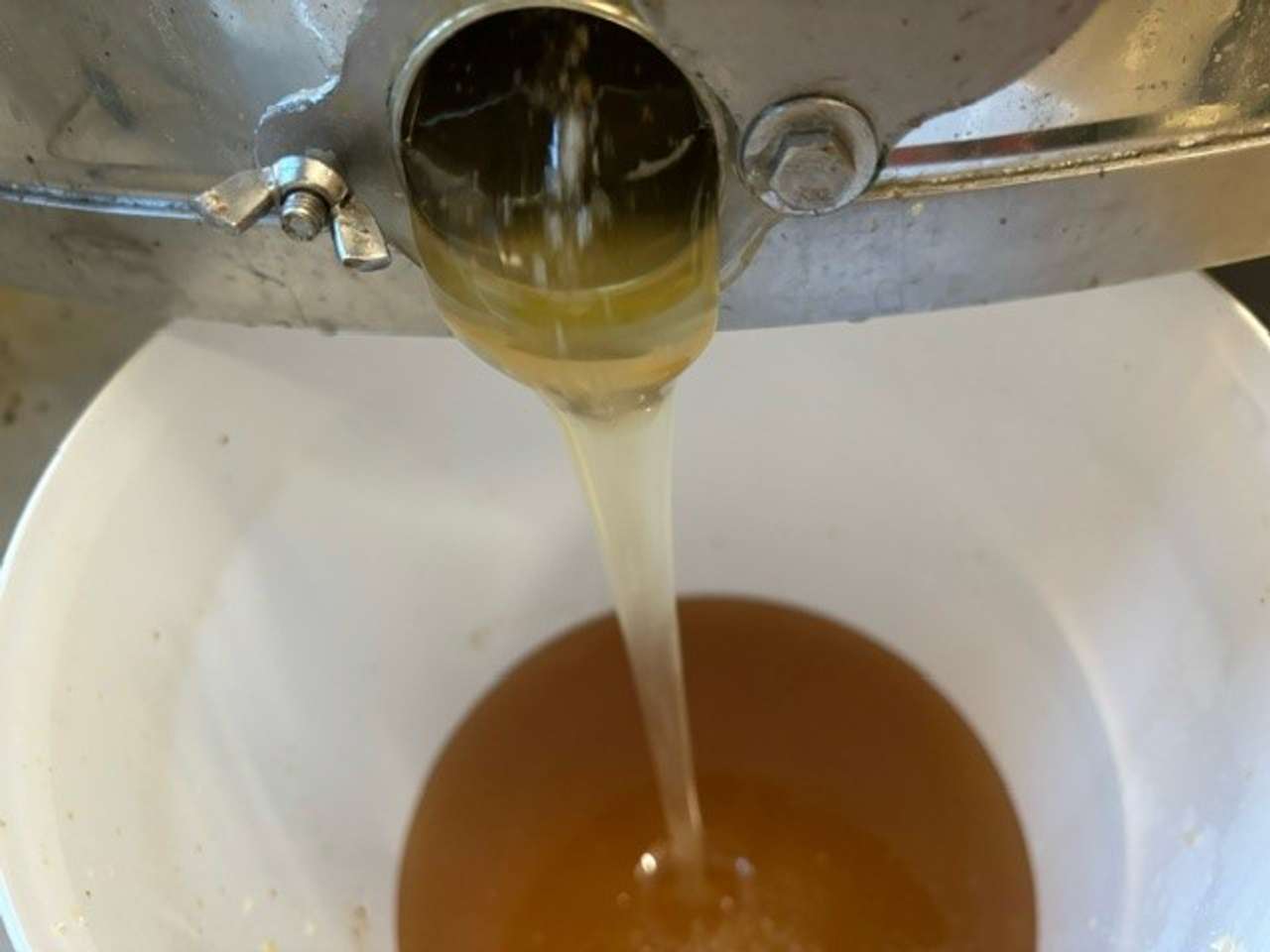 Filtern und Abfüllen: Der geschleuderte Honig wird gesiebt, um Wachsteilchen und andere Verunreinigungen zu entfernen. Anschließend wird der gereinigte Honig in Gläser abgefüllt.