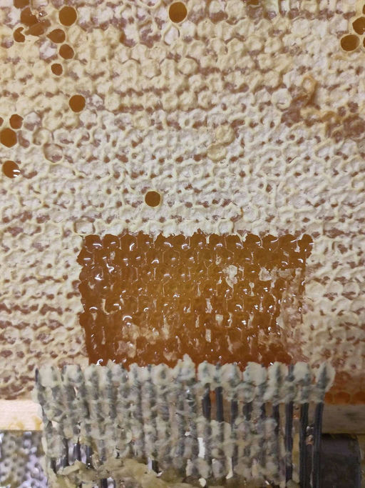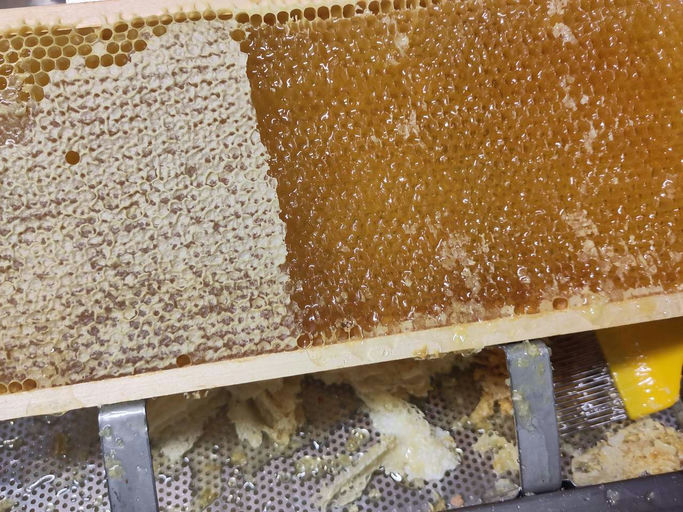 Bei der Honigernte werden die reifen Waben – also mit einem Wassergehalt von zumindest unter 20 %, im besten Fall unter 18 % – entnommen. Falls die Waben bereits verschlossen sind, werden sie mit einer Art "Gabel" geöffnet und anschließend in einer Zentrifuge, der Honigschleuder, ausgeschleudert. Da der Honig eine Rohkost ist, wird er anschließend nur noch gesiebt und kommt dann direkt ins Glas!