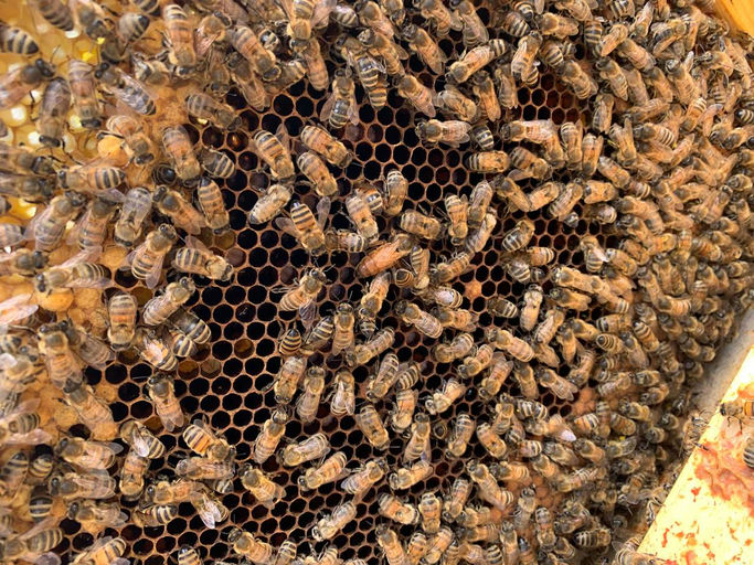Langsam wird es Frühling und die Bienen können wieder die ersten Sammelflüge starten. Besonders Pollen ist nun wichtig, da die Königin wieder Eier legt und die Brut gefüttert werden muss. Wir haben die Futtervorräte kontrolliert und auch die Königin bei der ersten Völkerdurchsicht auf den Waben entdeckt!
