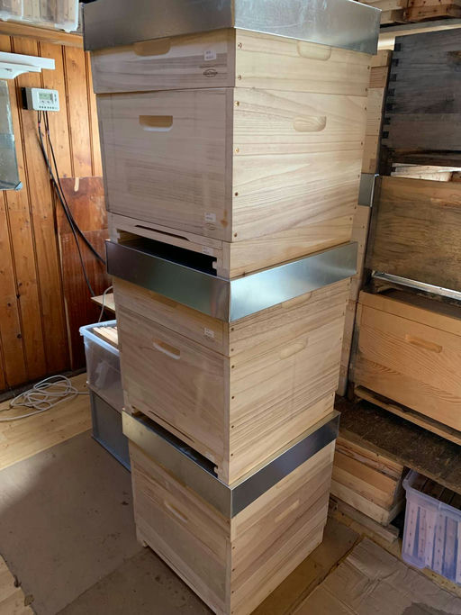 Rechtzeitig vor Beginn der neuen Saison sind die Beuten angekommen. Vielen Dank an dieser Stelle für das wieder einmal tolle Engagement von Aioi und Hektarnektar. Die Beuten werden bei nächster Gelegenheit noch bunt angestrichen, dann sind sie bereit für drei weitere Bienenvölker, die in diesem Jahr hoffentlich wieder leckeren Honig produzieren.