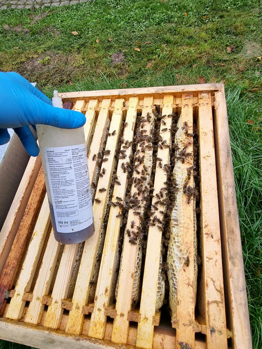Die Oxalsäurebehandlung steht jetzt an. Bei kühlen Temperaturen ziehen sich die Bienen zu einer Traube zusammen. Wenn nach dem ersten Frost die letzte Brut schlüpft, ist der optimale Zeitpunkt, um die Bienen gegen die Varroamilbe zu behandeln, da mit der letzten Brut auch alle Milben schlüpfen.