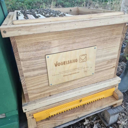 So, nun ist auch endlich die Plakette für die schöne neue Behausung da und wurde direkt angebracht. Eine kurze Durchsicht, ob alles okay ist... Und siehe da, die Queen hat sich super eingelebt und legt schon fleißig Nachwuchs. Zum Schluss gab es noch Futtersirup zur Stärkung und Auffütterung.