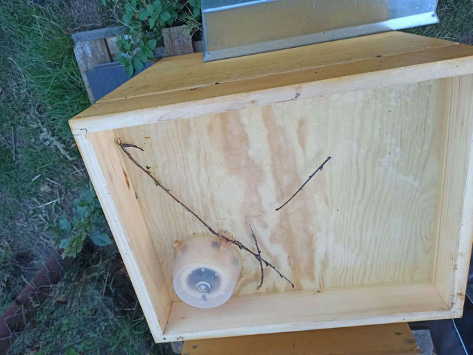 Nachdem die Völker abgeschleudert wurden, hat jedes Volk zunächst ca. 4 kg Winterfutter bekommen. Nachdem die Fütterer leer waren, haben wir die Verdunster mit Ameisensäure befüllt und auf die Rähmchen gestellt. Unsere Absperrgitter sind verzinkt. Diese sollte man vor der Behandlung mit Ameisensäure aus der Beute entfernen, da das Metall mit der Säure reagiert und die Gitter dadurch nicht sehr schön aussehen. Im Sommer werden die Absperrgitter verwendet, damit die Königin nicht in die Honigräume gelangt und diese bebrütet. Jetzt sind keine Honigräume auf der Beute, somit sind die Absperrgitter nicht nötig.