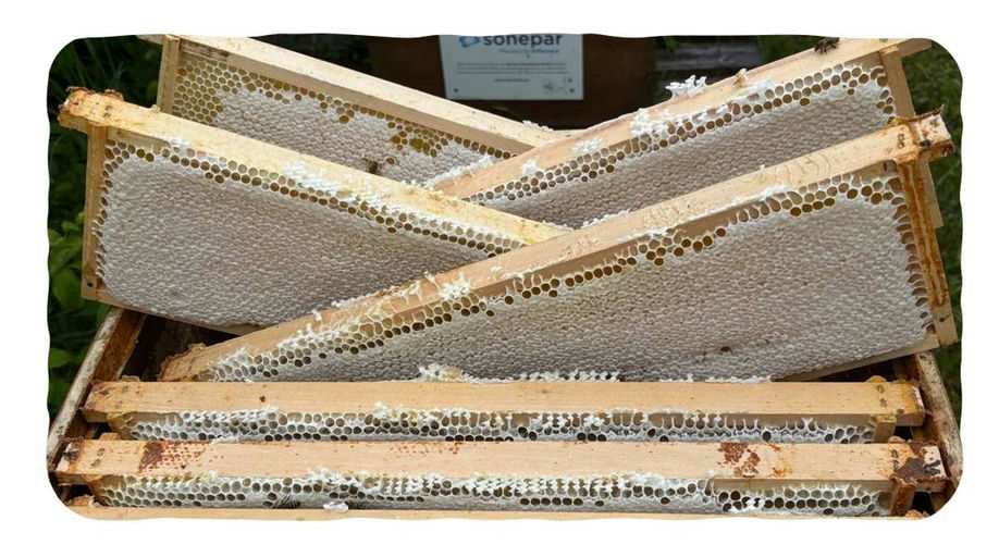 Das A und O für eine qualitativ hochwertige Honigernte ist eine gute Vorbereitung. Viele kleine Schritte müssen verrichtet werden und zwar mit äußerster Sorgfalt. Wer hier schludert, hat am Ende Gold verschenkt. Und um nur einige wenige Schritte zu nennen: Die beiden Honigräume wurden von mir abgenommen und ein neuer Honigraum mit Mittelwänden kam auf den Brutraum. Hinzu kam eine Bienenflucht und auf diese Bienenflucht wurde denn die beiden zur Seite gestellten Honigräume. Imkern live :-)