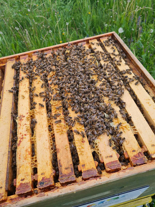 Im Mai vergrößert sich das Bienenvolk rasch, da Blütenpollen und reichlich Nektar dazu beitragen. Es ist wichtig, den Drohnenbau zu entfernen, um rechtzeitig der Vermehrung der Varroamilbe entgegenzuwirken.