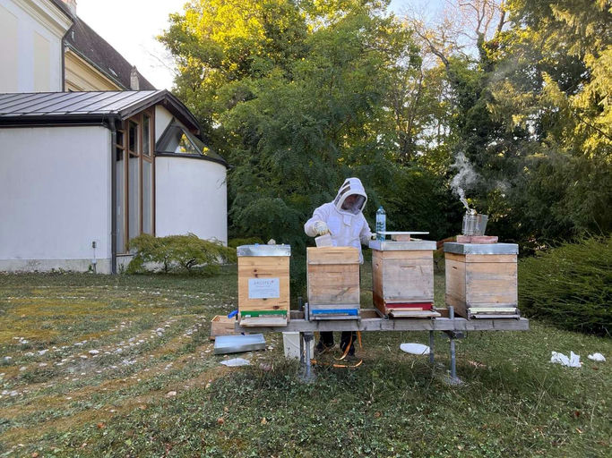Dieser Herbst schlägt alle bisherigen Temperaturrekorde. Wie die Bienen damit zurechtkommen? Meine Bienen stehen bei vielen efeubewachsenen Bäumen, das ist für die Bienen eine tolle Spättracht. Sie bringen noch fleißig Nektar und vor allem Pollen ein. Die Völker sind unterschiedlich stark, wurden schon eingefüttert und erneut gegen Varroa behandelt. Eine große Hilfe war mir Lotti, die interessiert und furchtlos mitgeholfen hat, die Völker einzufüttern.