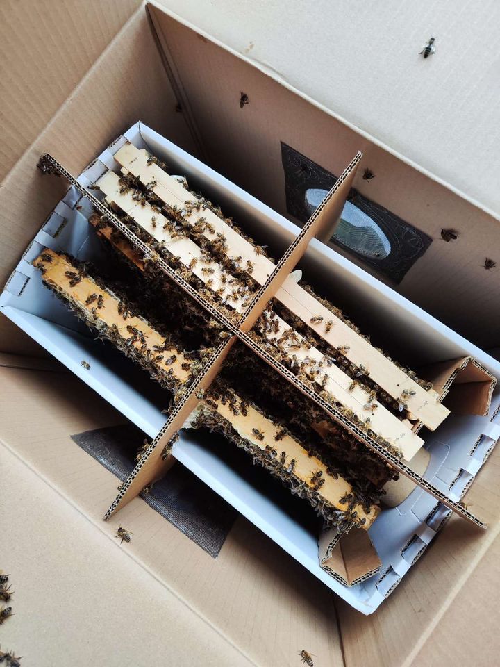 Zum dritten Mal nun kann ich mich über die Unterstützung der Firma Vogelsang freuen. In diesem Jahr sind die Mädels etwas weiter angereist, aus Österreich, aus der Imkerei Bienenjäger. Wie immer hat alles sehr gut geklappt, auch wenn meine Kinder etwas irritiert über die summende Kiste im Flur waren. Die Katzen fanden es prima und haben sich gleich draufgesetzt! Der Umzug von der Transportkiste auf die Beute hat sehr schnell geklappt. In diesem Jahr habe ich mich für einen roten Anstrich entschieden, natürlich mit einer speziellen Farbe.