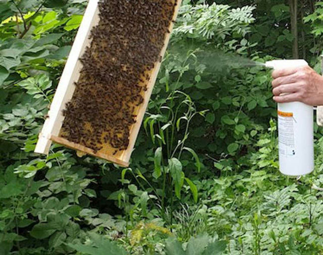 Im Juni habe ich von einem Freund einen Naturschwarm übernommen und in die Behausung auf meinem Grundstück übersiedelt. Bevor die Bienen in ihr neues Zuhause gezogen sind, habe ich sie noch einmal mit Milchsäure besprüht, um die Varroalast etwas zu reduzieren. Mit Apiinvert habe ich ein bisschen zugefüttert und muss wohl noch einmal kontrollieren, ob das reicht, da die Trachtlage momentan nicht optimal ist.