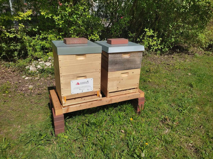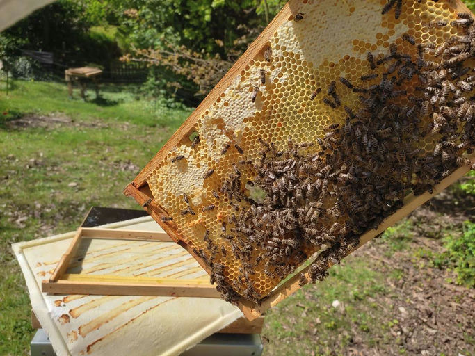 Heute habe ich aufgrund des ausnahmsweise guten Wetters eine Durchsicht gemacht. Den beiden Völkern geht es gut, es sind jeweils etwa 10 Brutwaben vorhanden. Wegen des kalten und ungünstigen Wetters der vergangenen Woche haben die Bienen allerdings noch nicht viel Nektar eintragen können.