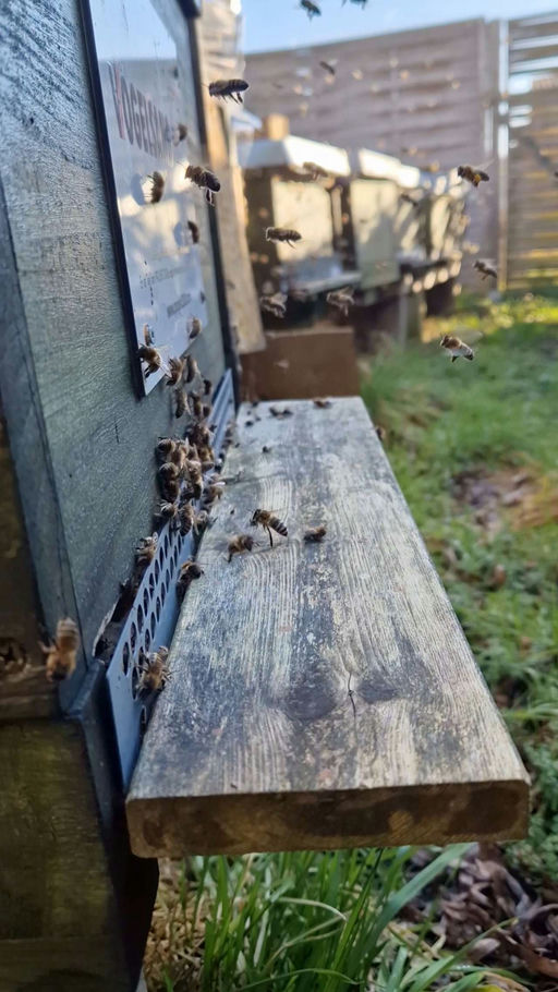 Die ersten warmen Tage haben die Bienen erlebt und diese Temperaturen genutzt, um auszufliegen und sich zu entleeren. Das ist der Grund, warum man an den ersten warmen Tagen keine Wäsche draußen aufhängen sollte. Die Bienen haben auch die ersten Blüten angesteuert und Pollen gesammelt. Dies benötigen sie, um die Brut aufzuziehen.