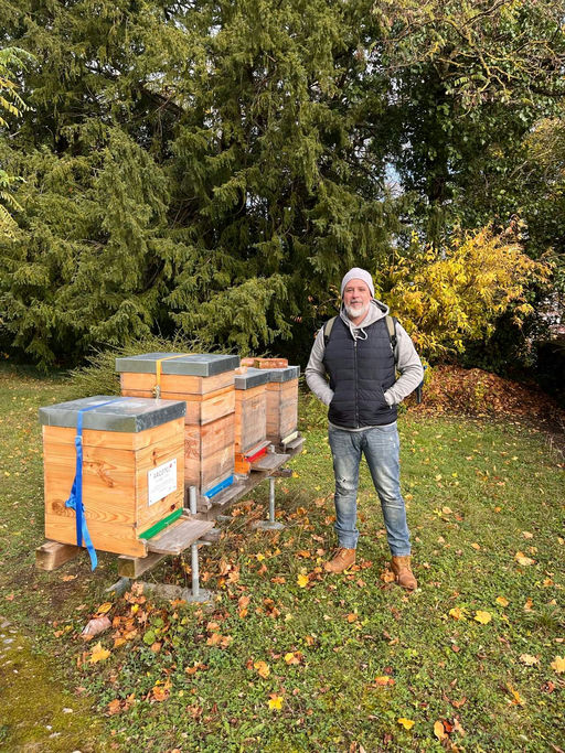 Bis Mitte November sind die Bienen ausgeflogen und haben vor allem noch Pollen eingetragen. Pollen einzutragen bedeutet, dass die Königin noch brütet, denn Pollen ist vor allem Nahrung für den Nachwuchs. Ab Mitte November wurde es dann doch herbstlich feucht-kalt. Da bleiben die Bienen zu Hause und bilden eine Traube um die Königin, um sie zu wärmen.