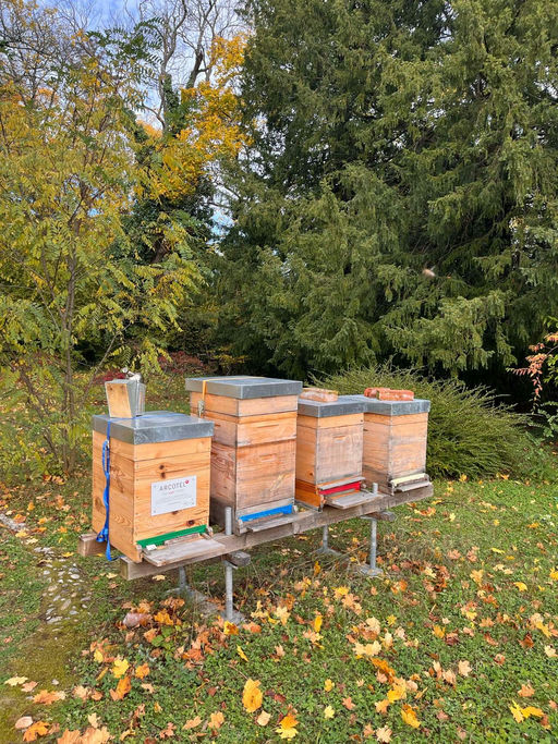 Nachdem die Bienen gegen die Varroamilbe behandelt und eingefüttert wurden, gibt es für den Imker an den Bienenstöcken nicht mehr viel zu tun. Ich bin trotzdem etwa alle zehn Tage bei den Bienen zu Besuch. Auch nach jedem Herbststurm ist eine Kontrolle angesagt, da meine Bienenstöcke unter altem Baumbestand stehen, wo immer wieder Äste abbrechen und die Beuten beschädigen oder umwerfen können. Ende Oktober, bei über 14 bis 15 Grad, herrscht noch immer reger Flugbetrieb, und die Bienen kommen mit vollen Pollentaschen zurück. Das ist schon erstaunlich, vor allem frage ich mich, welche Pflanzen jetzt noch Pollen geben. Die Biene auf dem Bild hat sich einen schönen Platz zum Sonnen ausgesucht ;-)