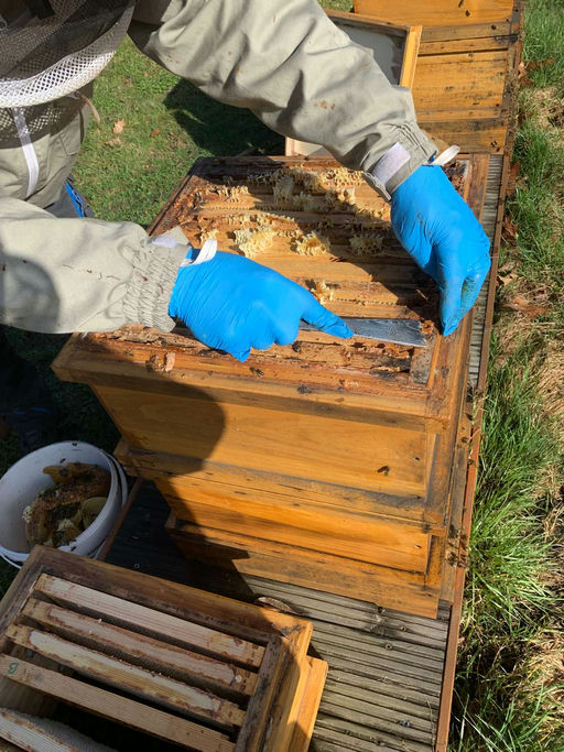 In diesem Monat haben wir die erste große Durchsicht des Jahres durchgeführt. Wir haben die überflüssigen Futterwaben entfernt, damit wir sie im nächsten Winter wieder in die Völker hängen können und sie über den Sommer keinen Platz wegnehmen. Zudem haben wir die Baurahmen wieder in die Völker eingesetzt.