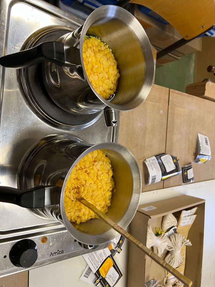 Frühlingshafte Temperaturen Ende Dezember und Anfang Januar, teilweise im zweistelligen Bereich, veranlassten meine Bienenvölker zum Ausflug – erstaunlicherweise mit Polleneintrag. Danach gingen die Temperaturen schlagartig wieder herunter. Hier bleibt nur zu hoffen, dass dieses Wetterchaos alle Bienenvölker überleben werden. Im Januar beschränkten sich die Arbeiten auf das Kerzengießen aus dem gewonnenen Wachs.