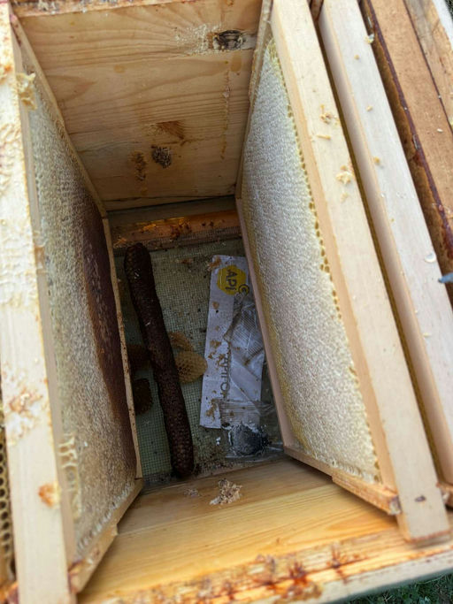 Heute haben wir die Futterstände kontrolliert und zusätzlich noch Futterteig gegeben, da noch ein paar warme Tage angesagt sind. Die Varroabehandlung durch Verdampfen von Oxalsäure haben wir ebenfalls abgeschlossen. Leider hat sich die Befürchtung bewahrheitet: Ein Volk ist verstorben. Es war jedoch genug Futter vorhanden, das wir auf ein anderes, schwächeres Volk umgeschichtet haben.